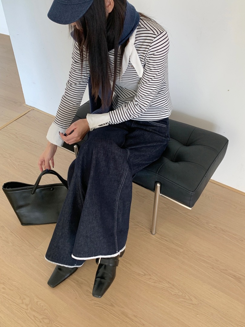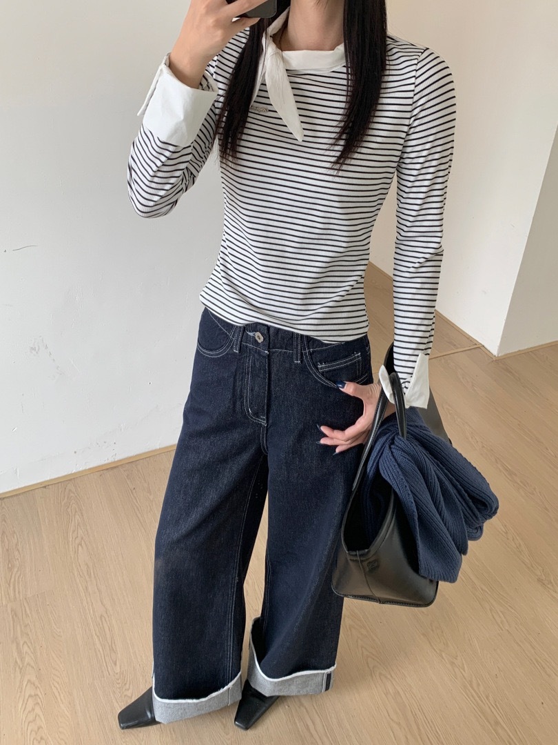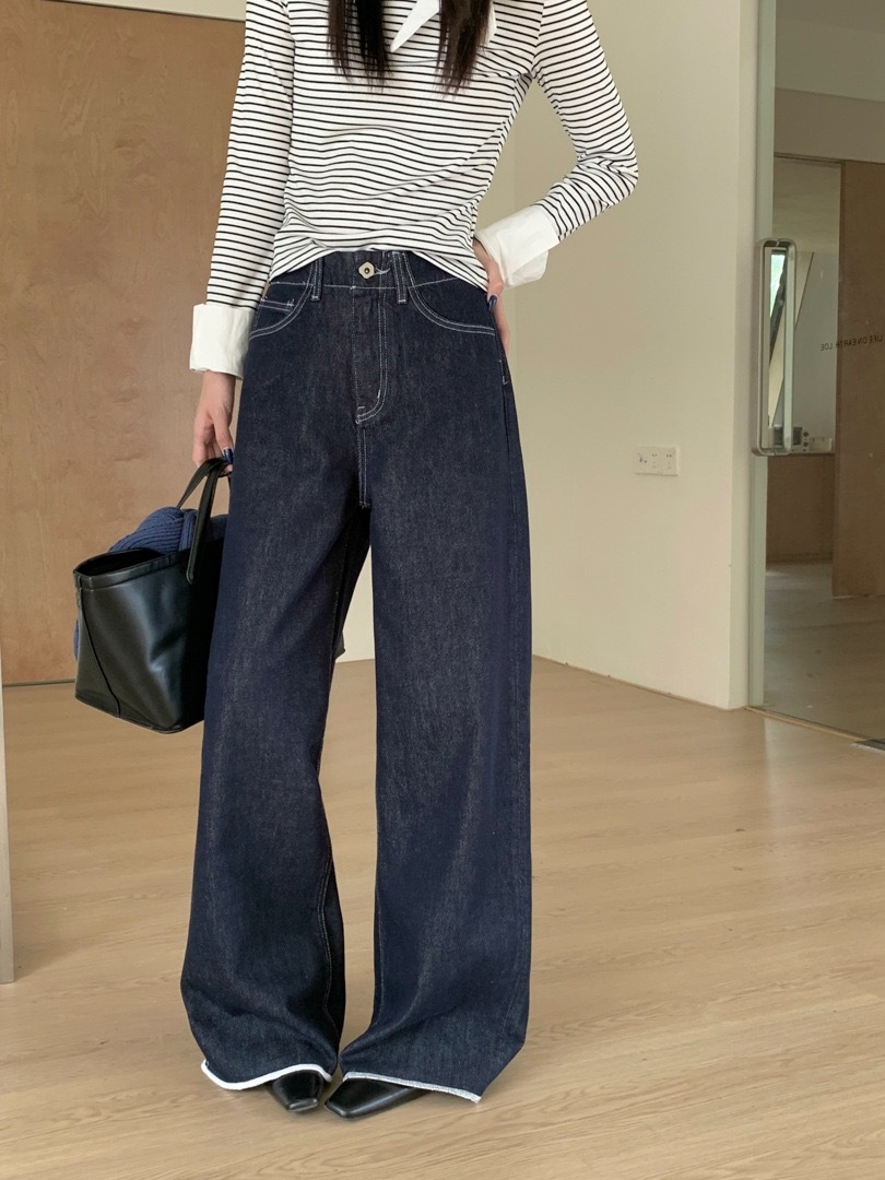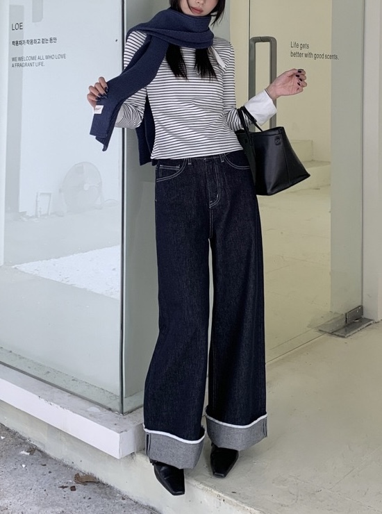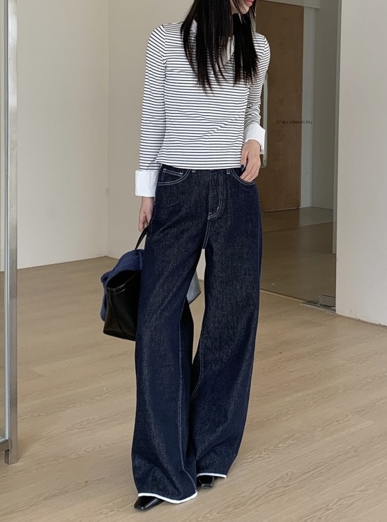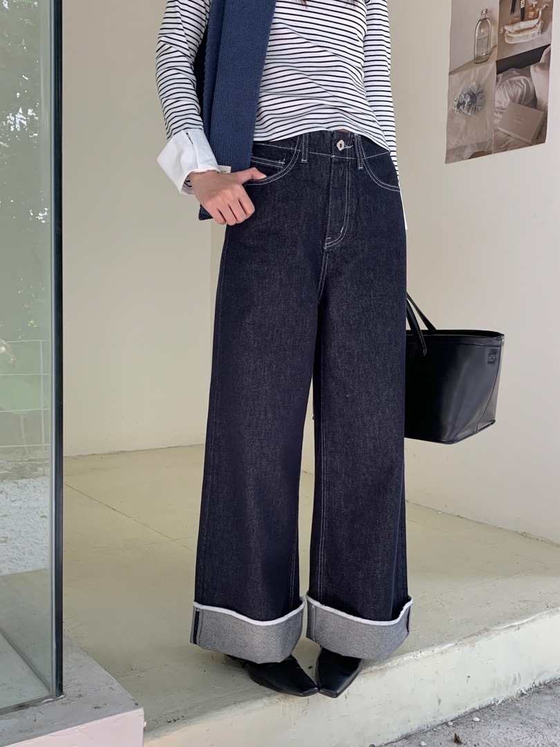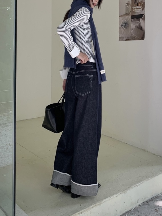 兩穿 ! 防掉色寬筒原色牛仔長褲