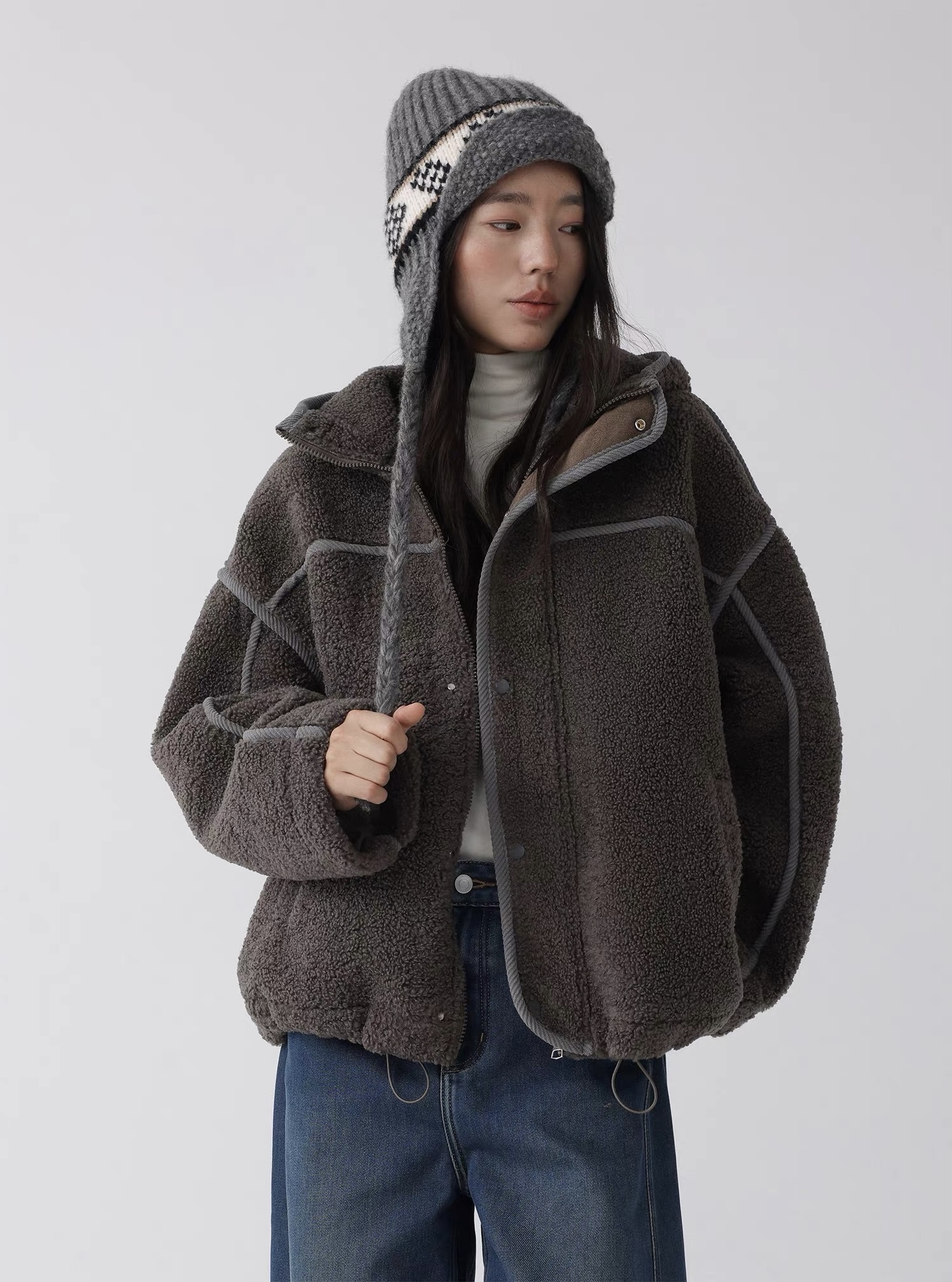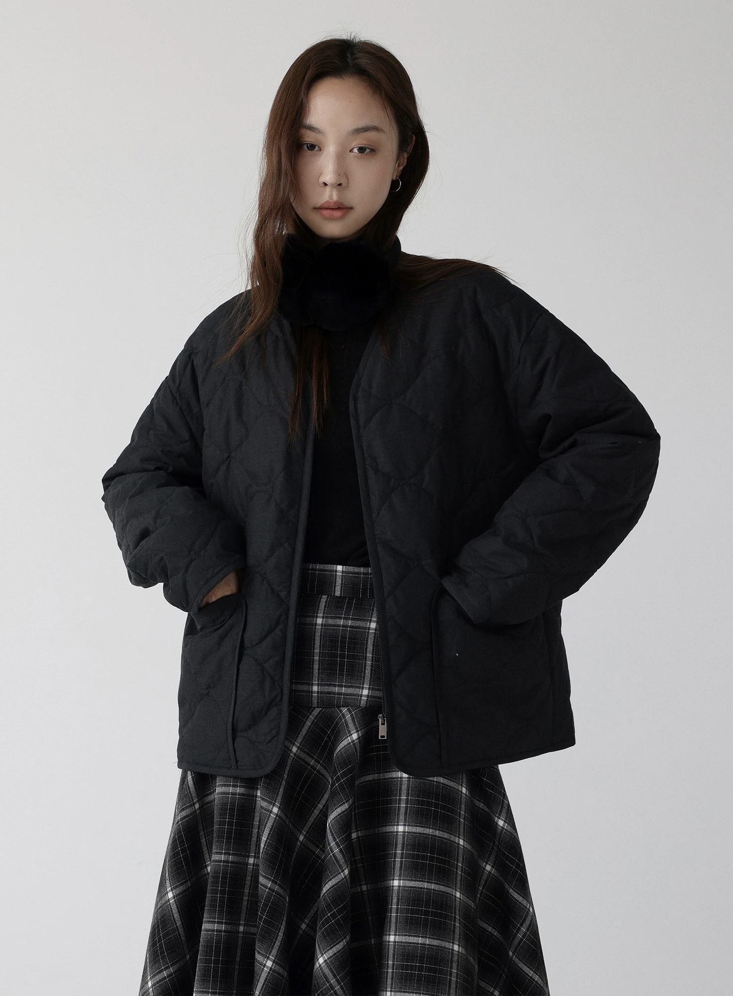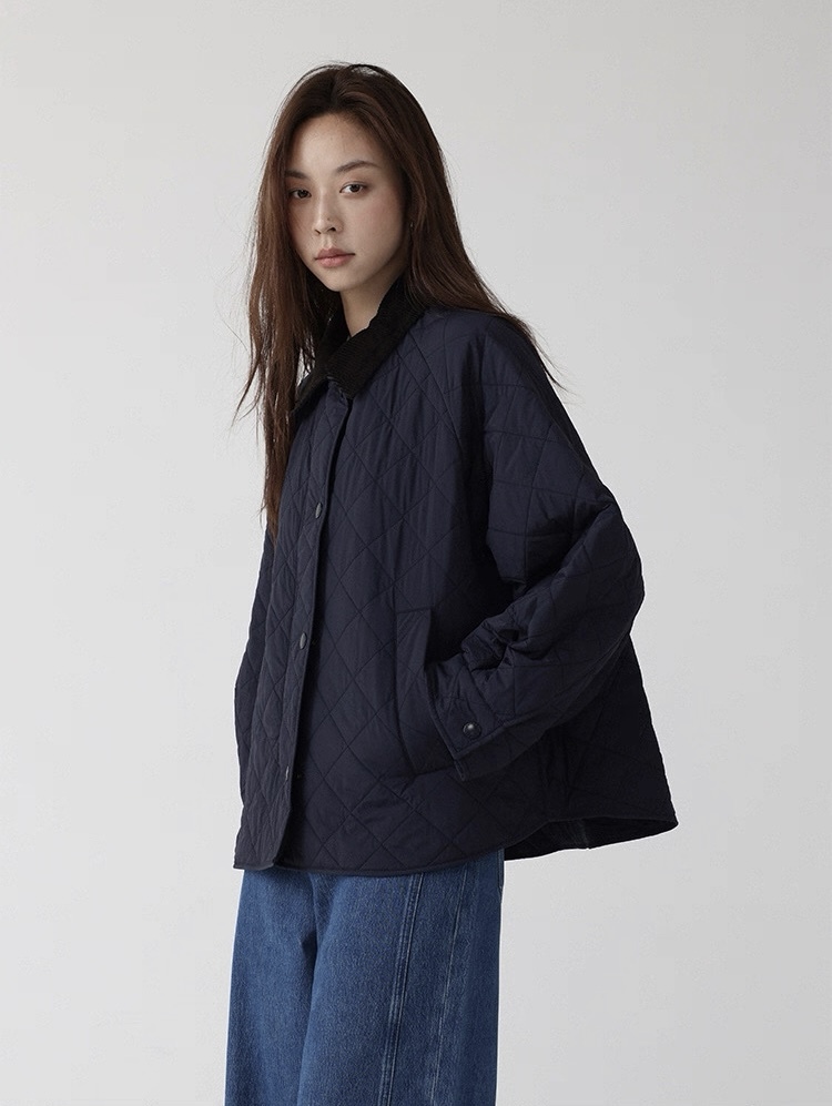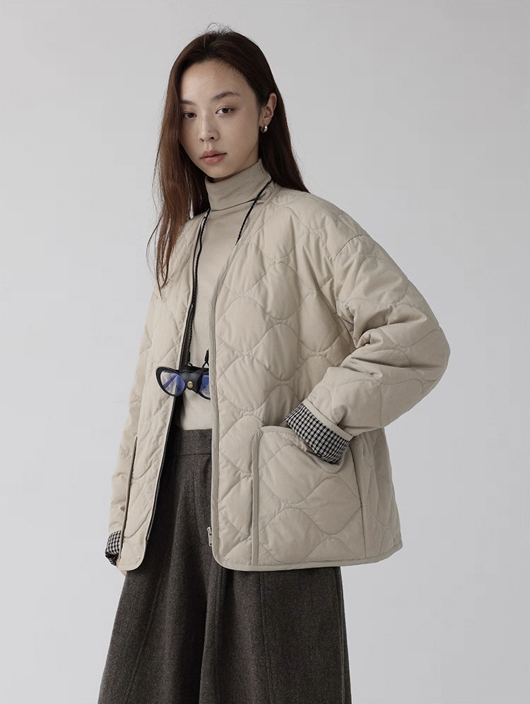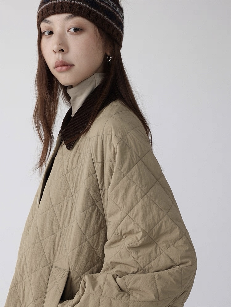 【熱銷】菱格紋縫線輕暖羊毛棉外套