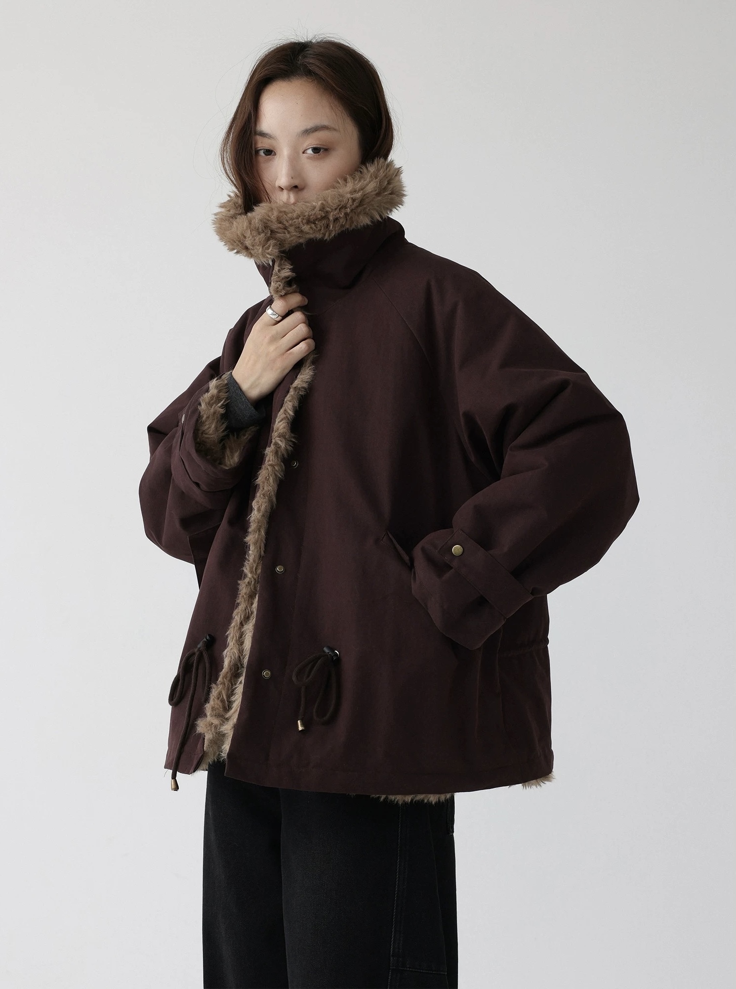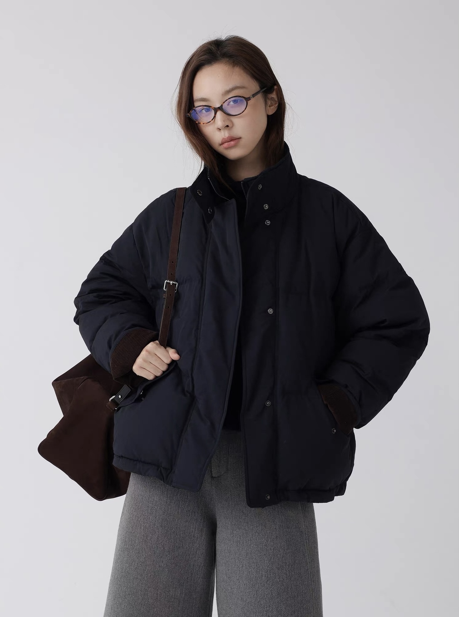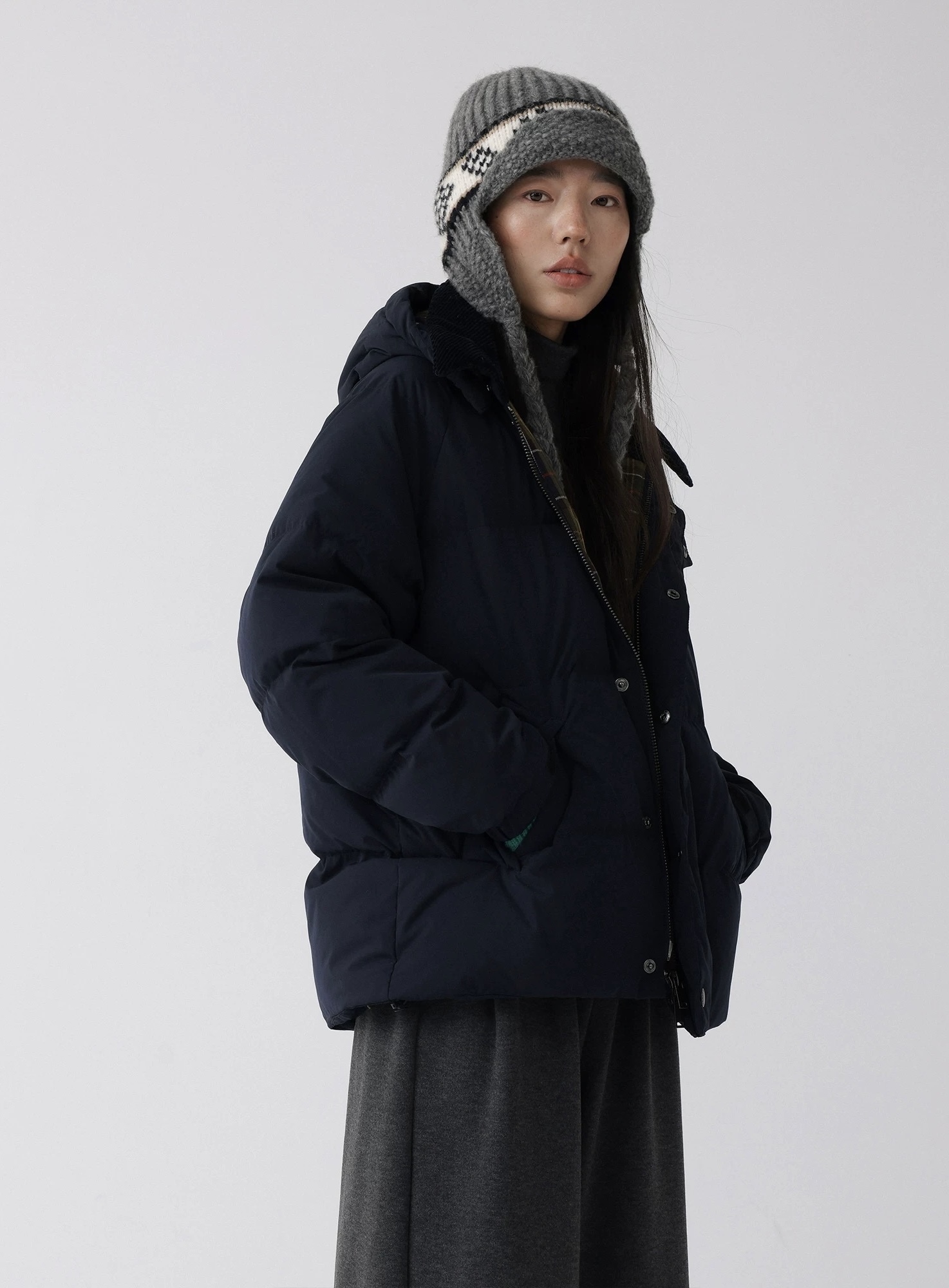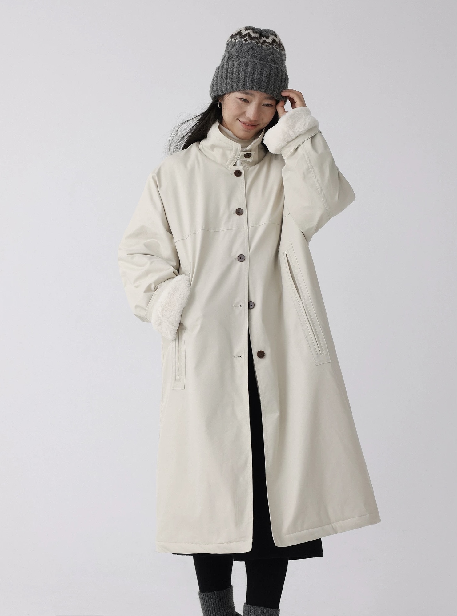 【可拆卸毛絨領】雙層領設計小立領中長版羽絨外套