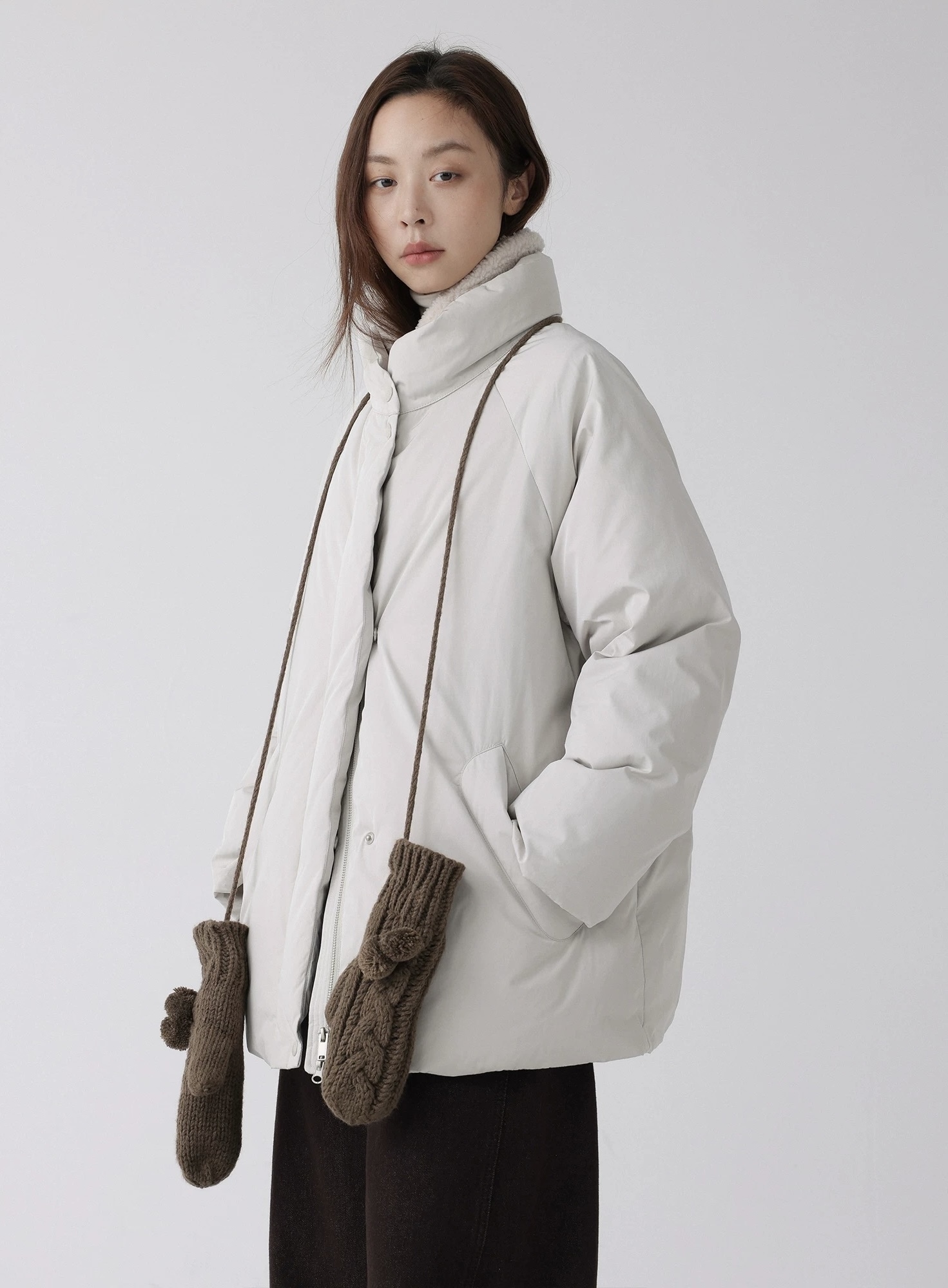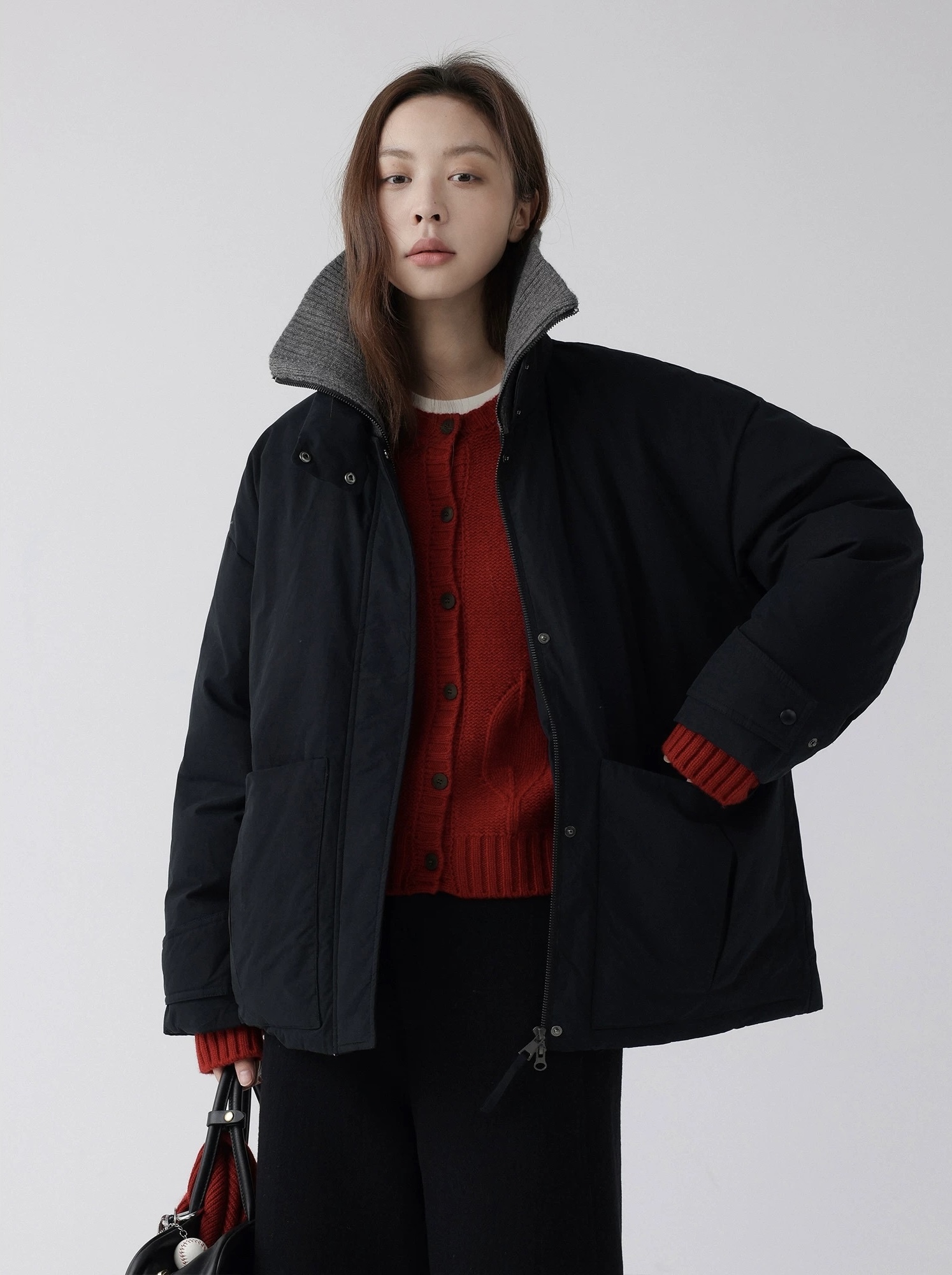 【1+1】針織披肩+輕暖圓領羽絨外套