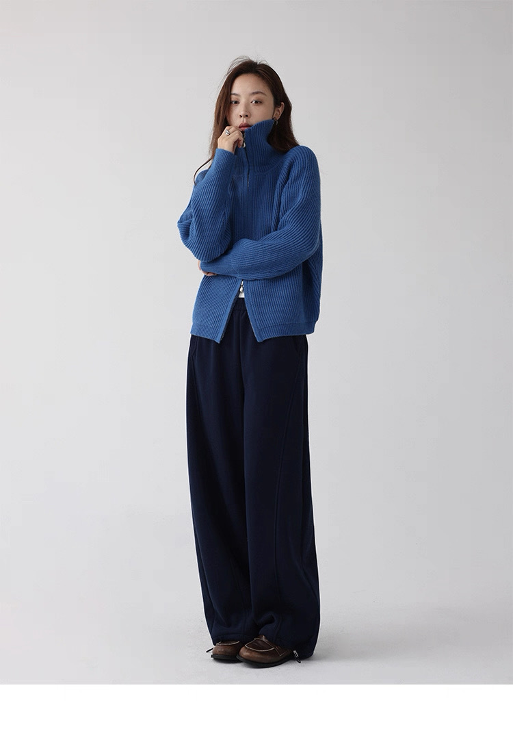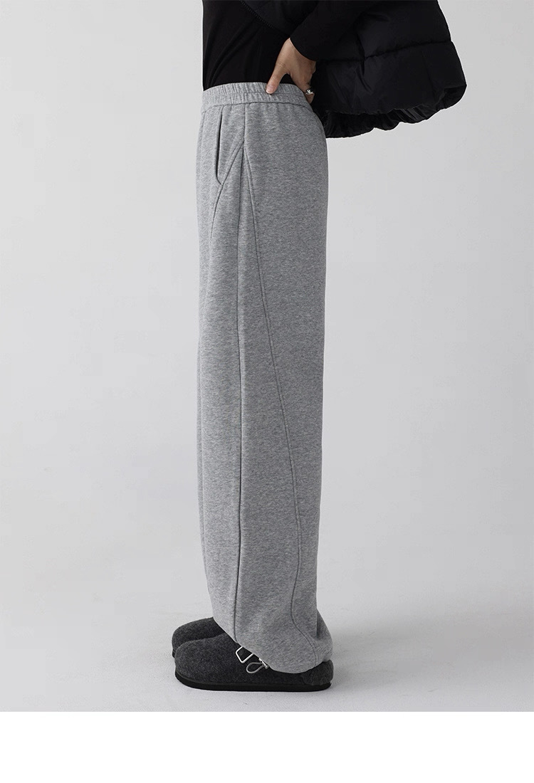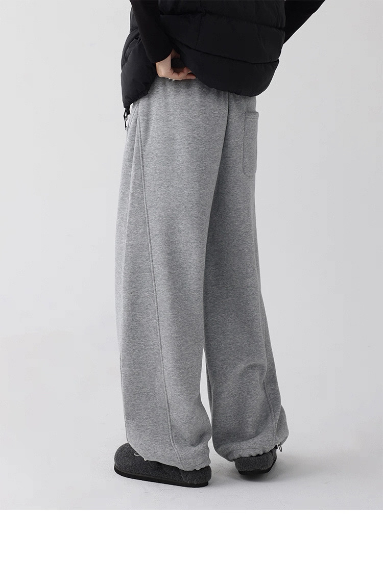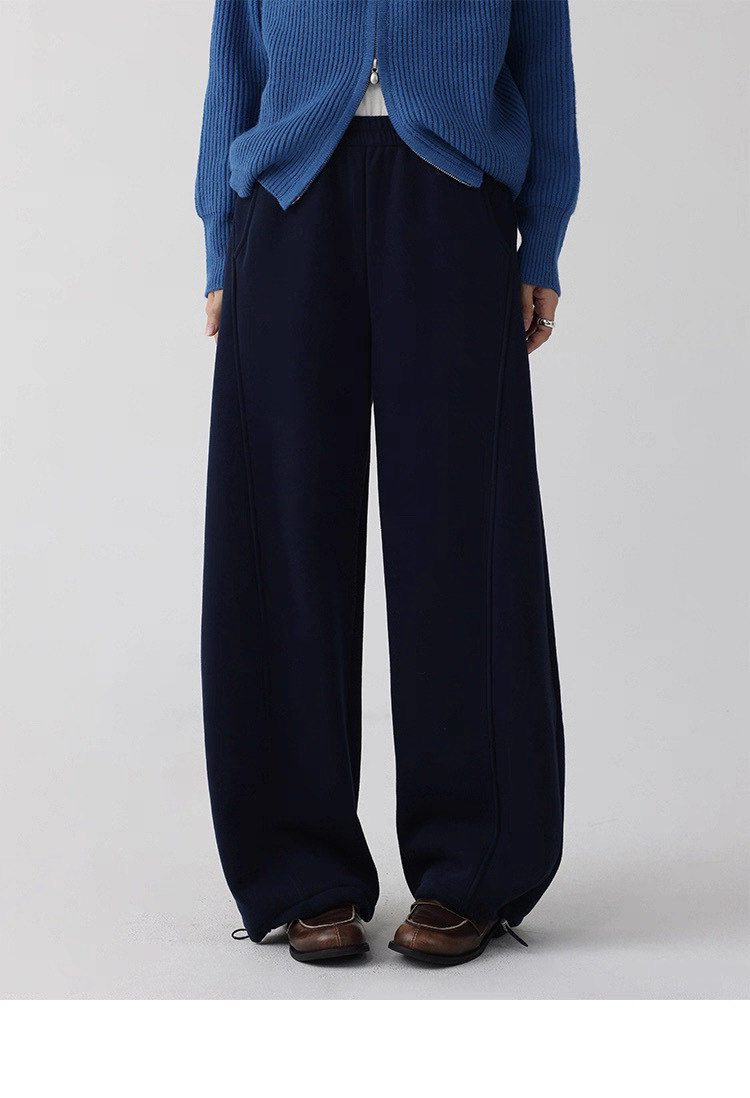 【兩穿推薦】高腰割線腳口抽繩刷絨棉褲