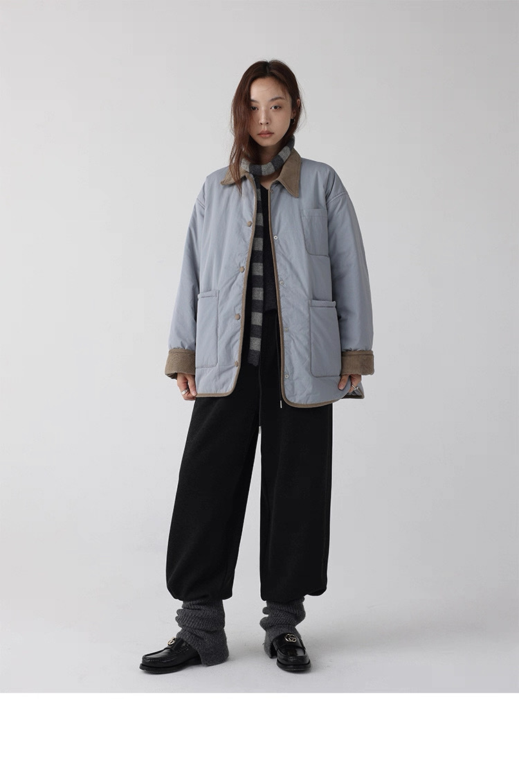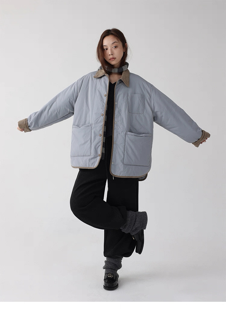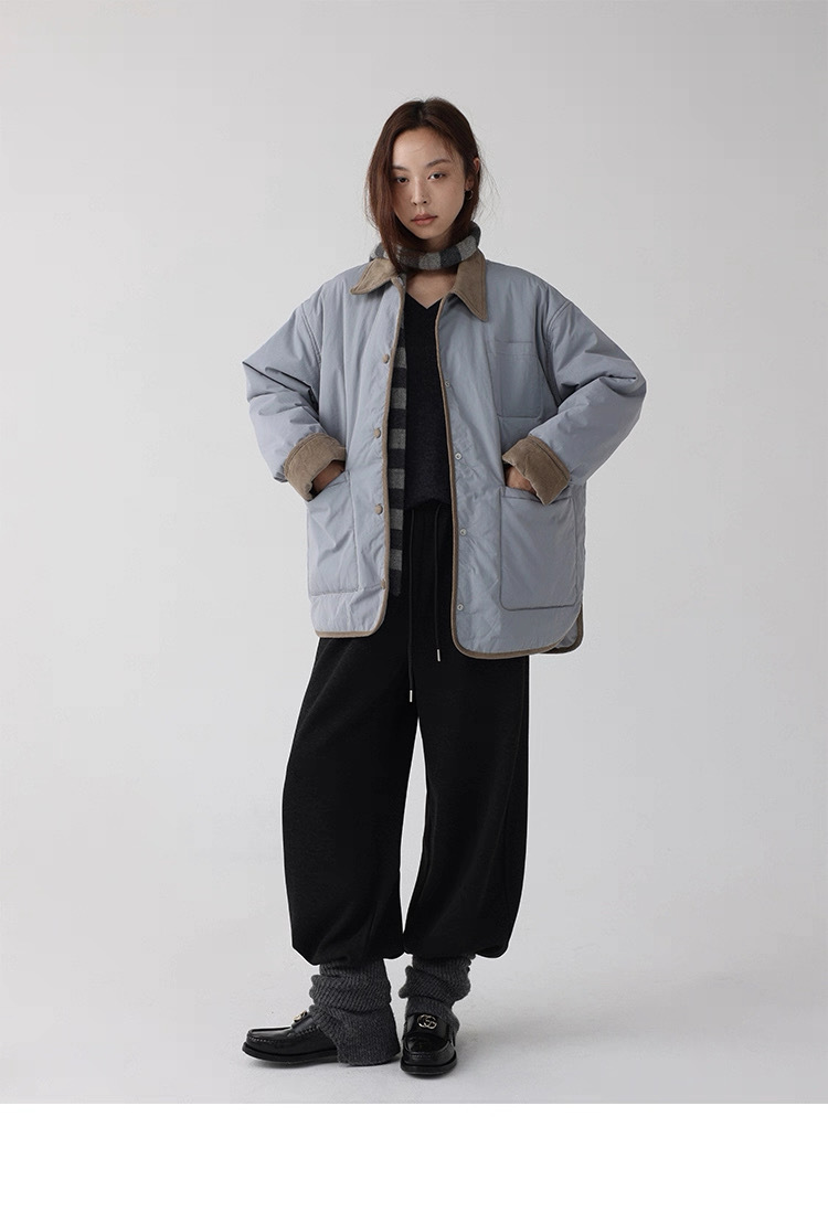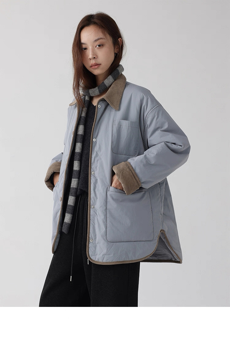【冬季特惠】異材質雙色拼接鋪棉外套