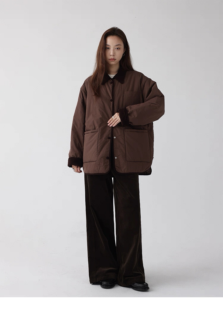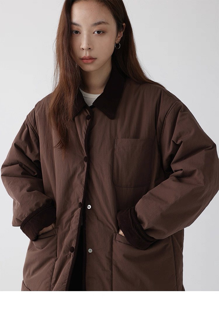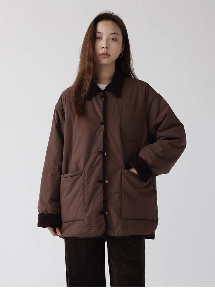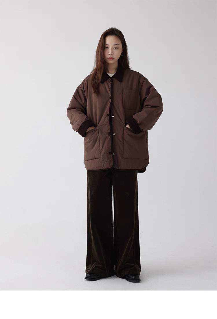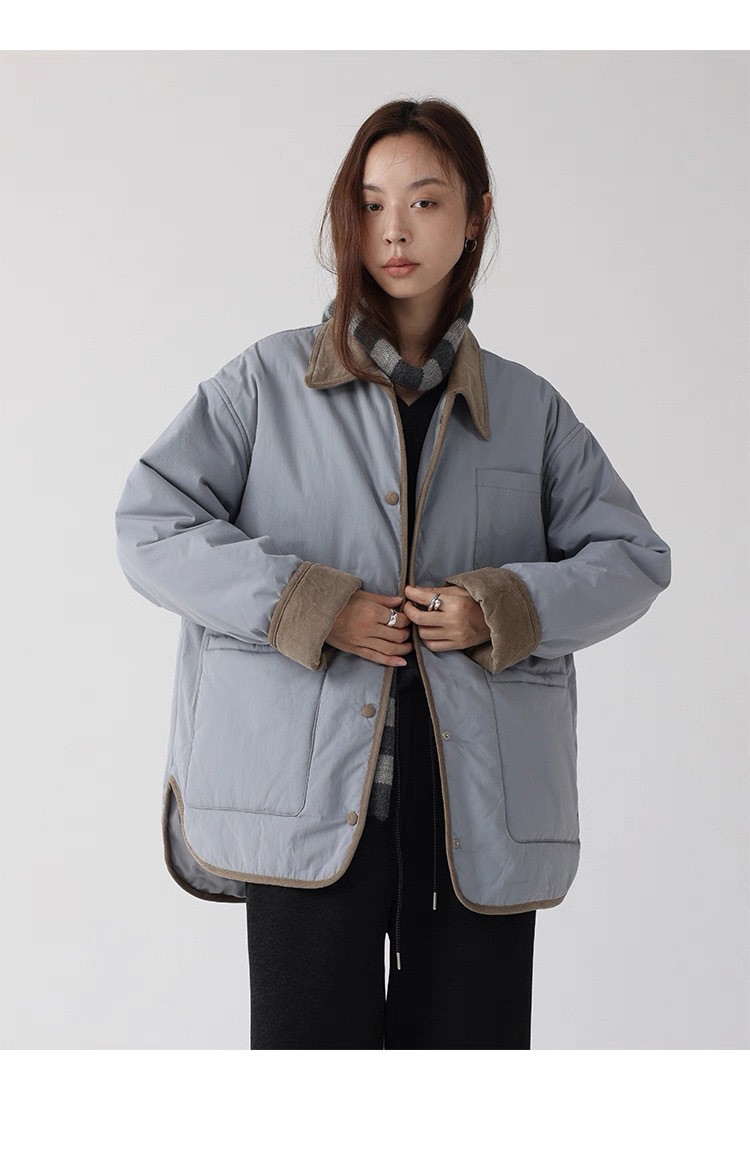 【冬季特惠】異材質雙色拼接鋪棉外套