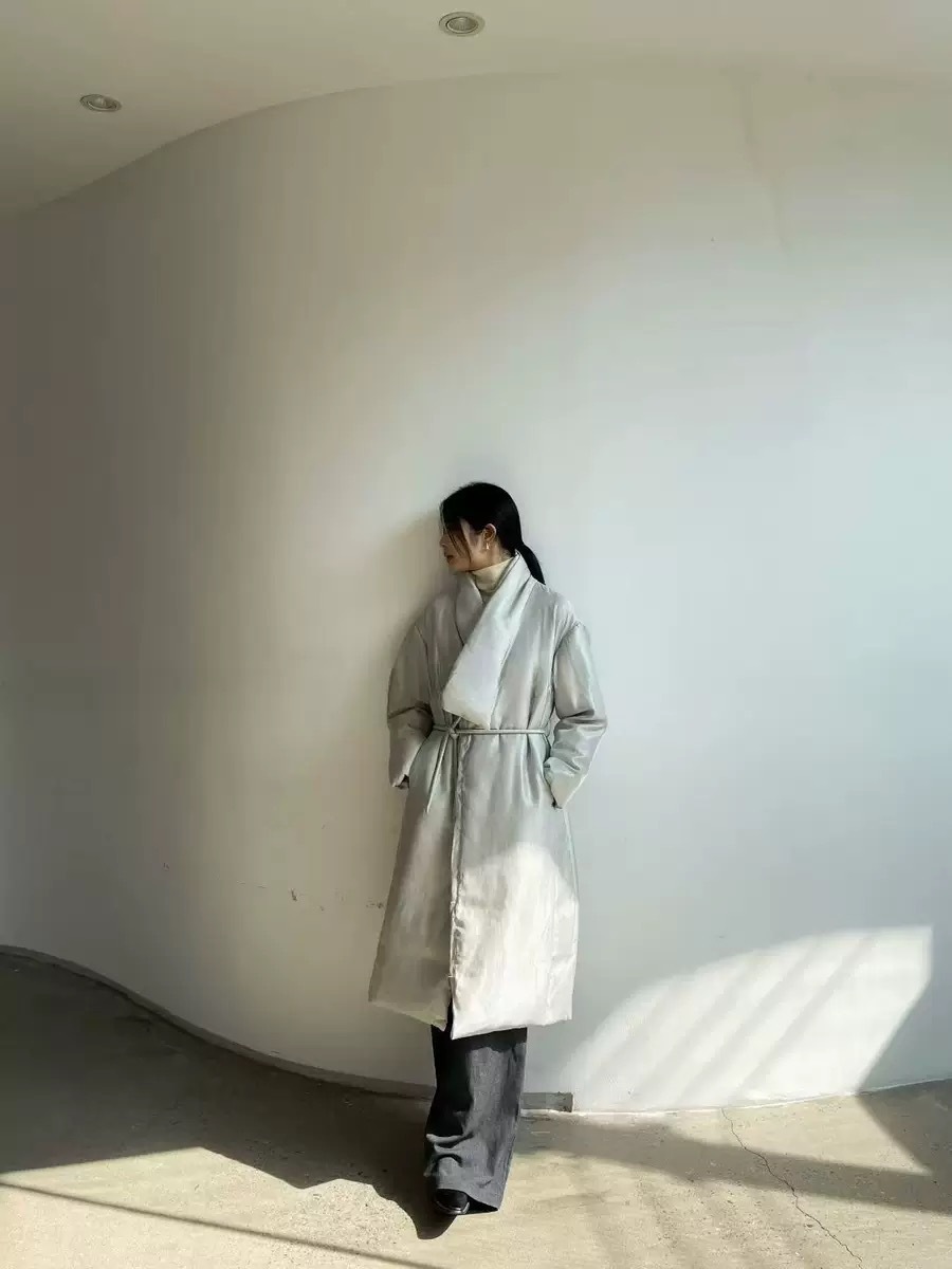 【早鳥優惠】極簡圍巾領設計長版羽絨外套