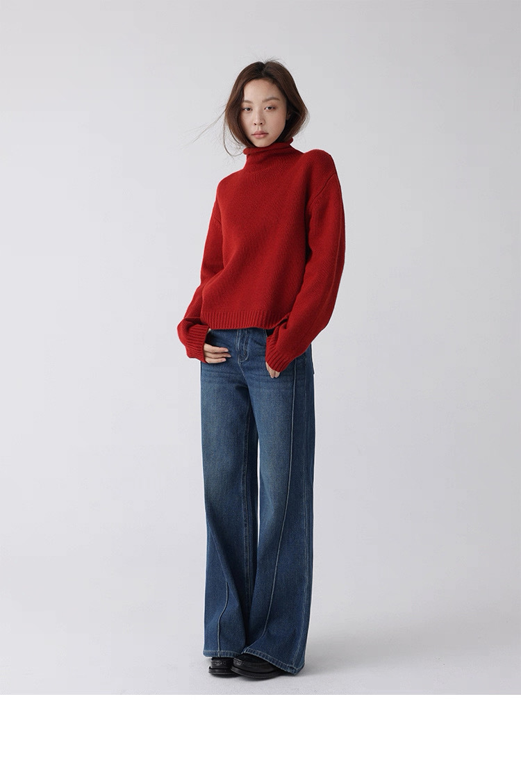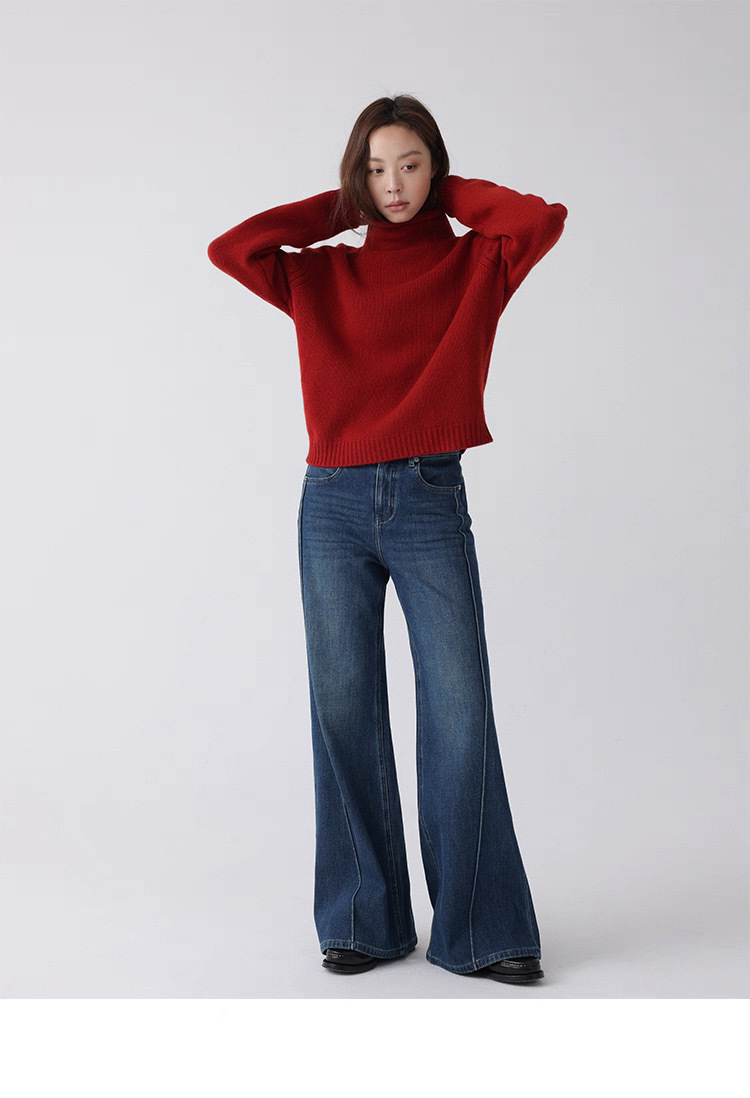 時髦大長腿!高腰彈力小喇叭牛仔褲