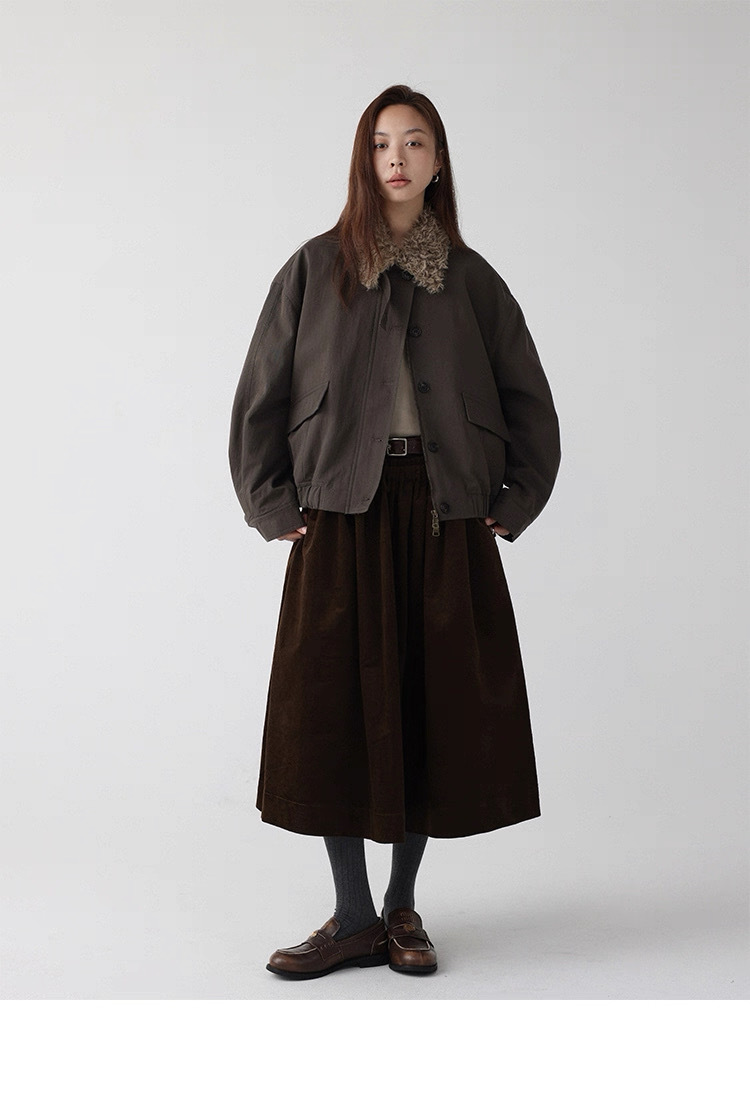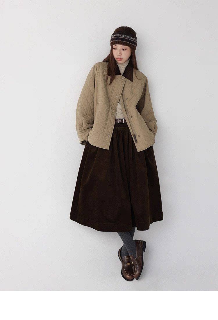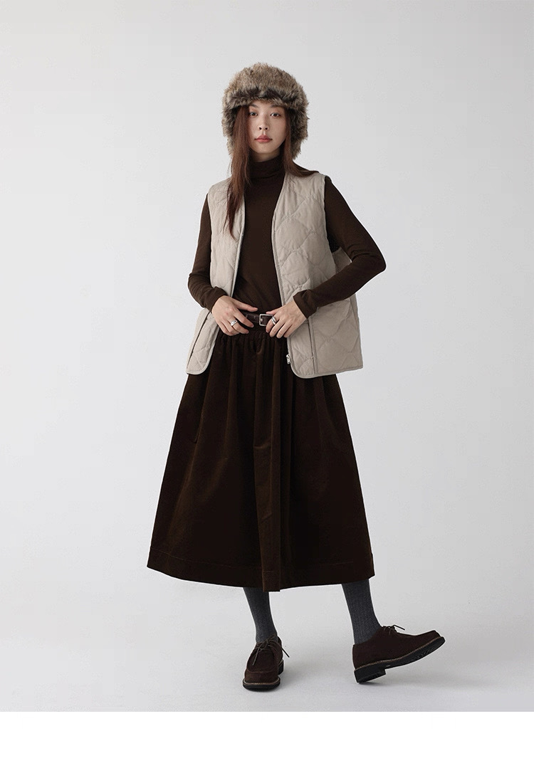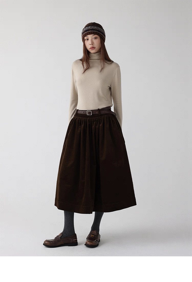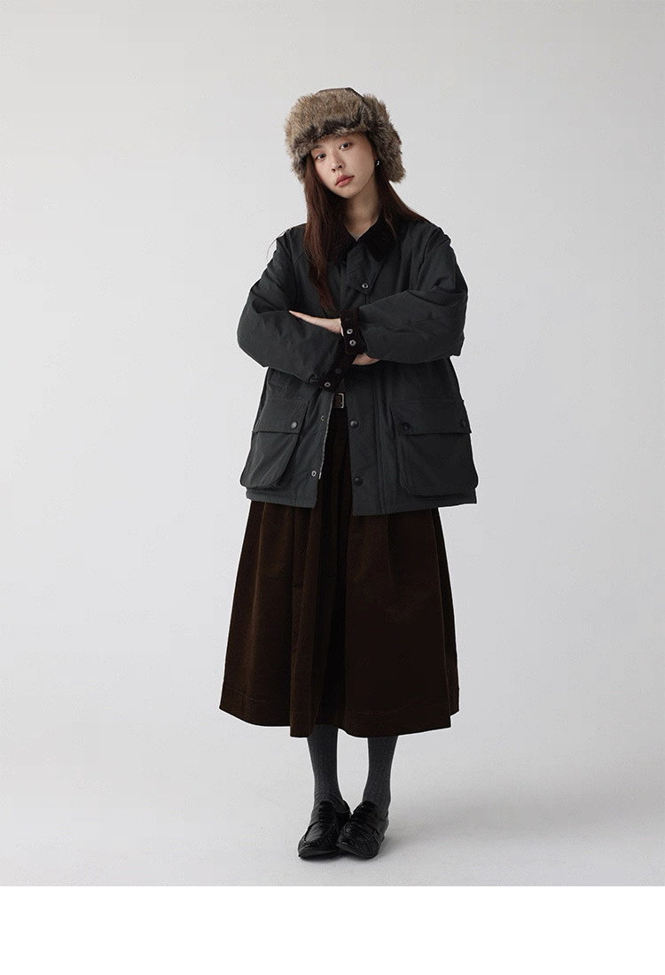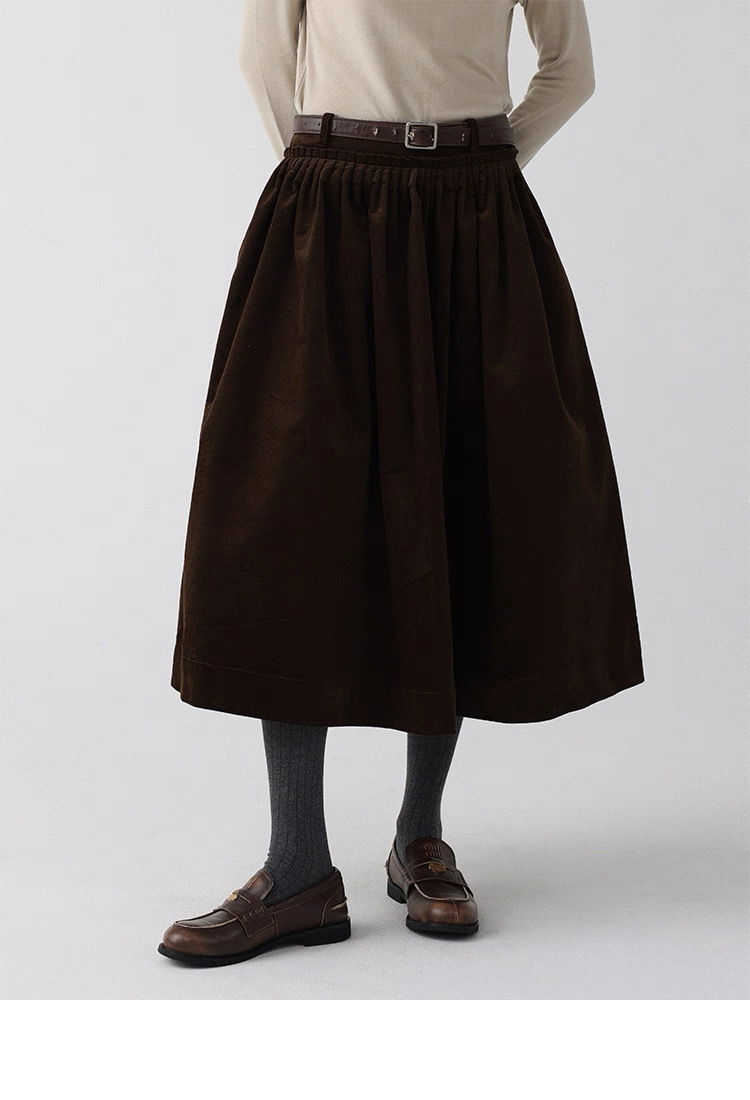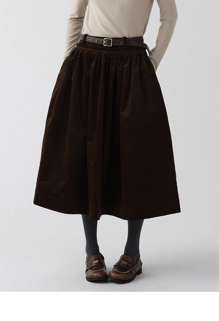法式燈芯絨口袋A字裙