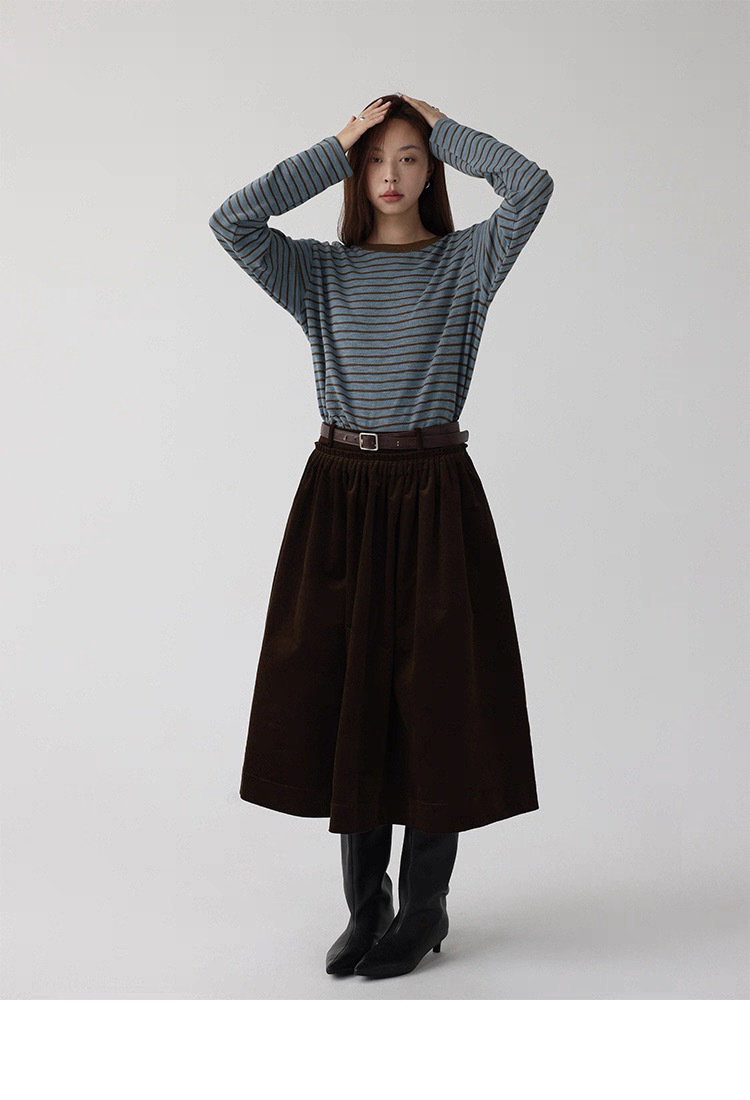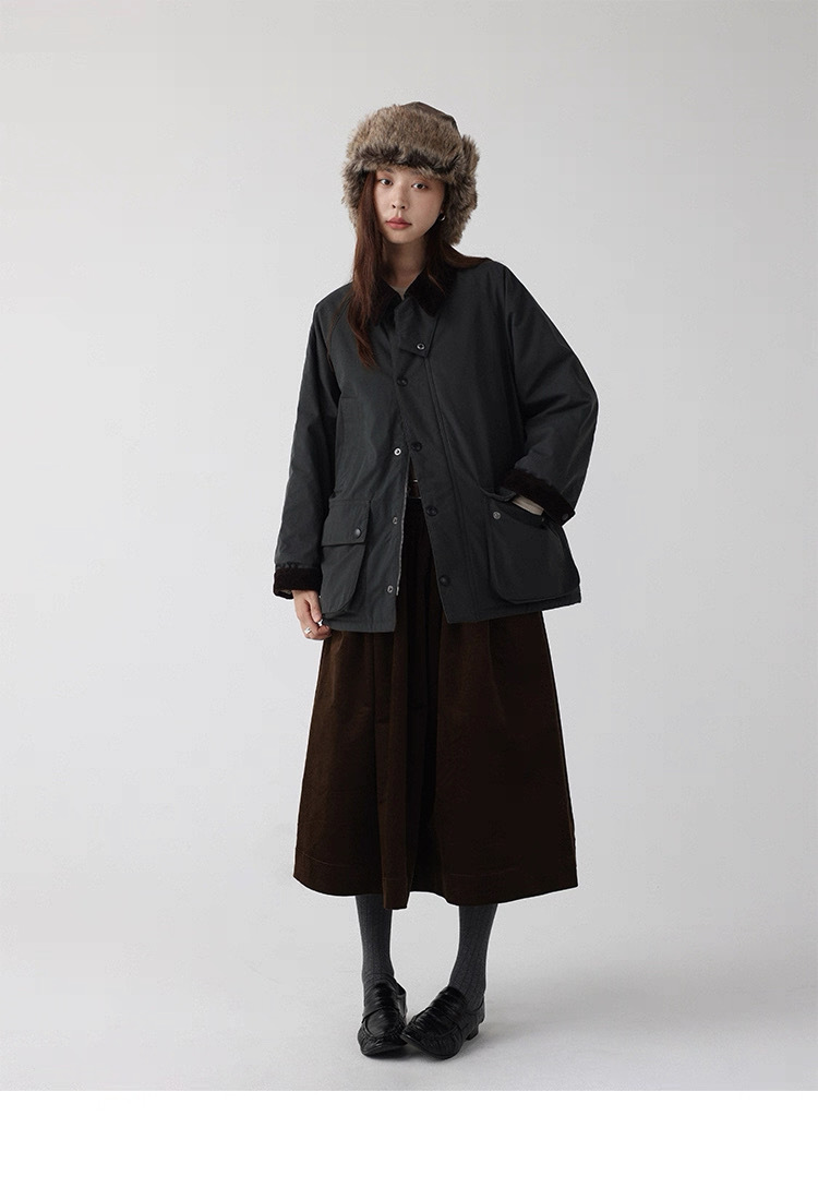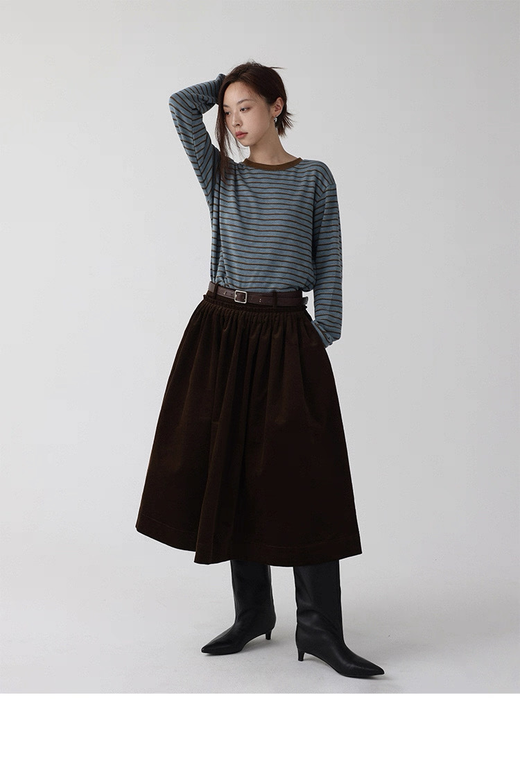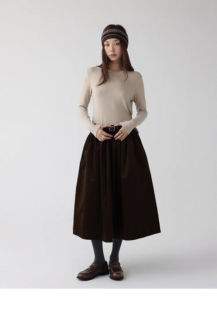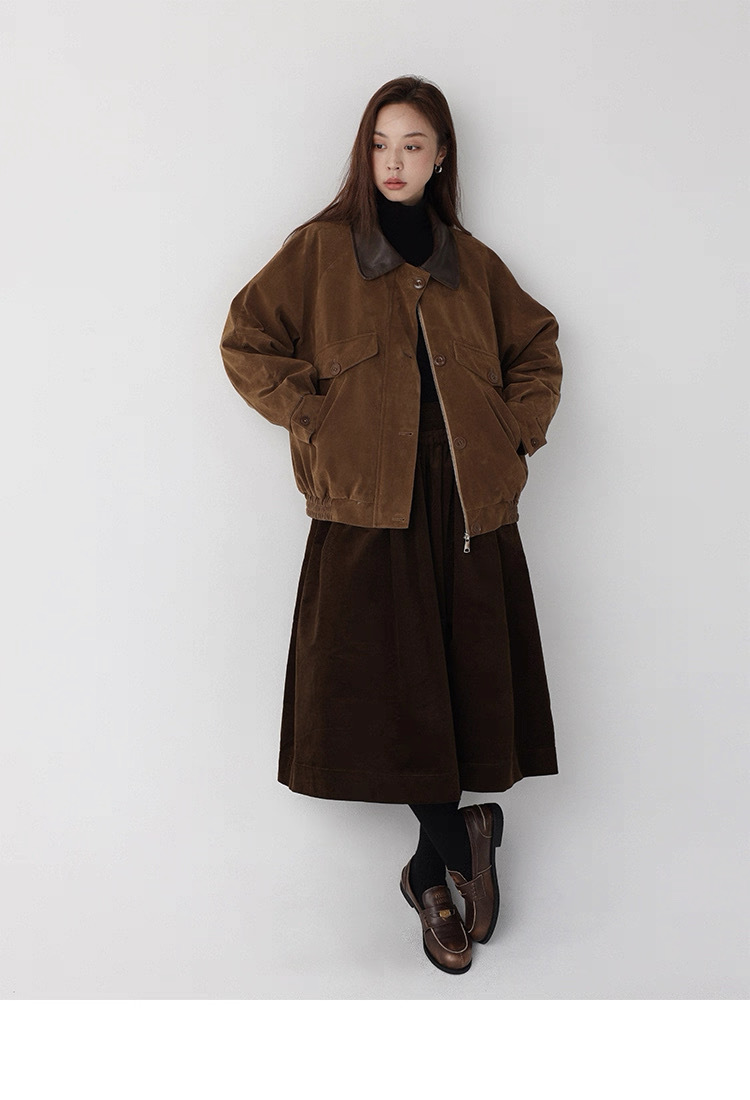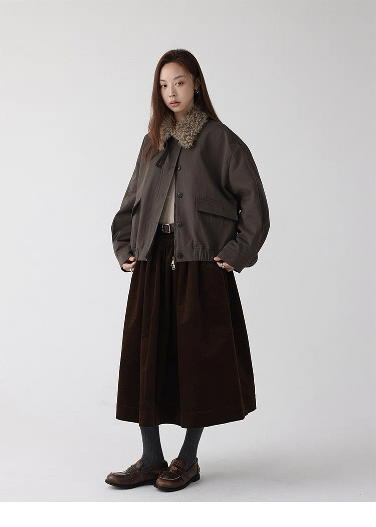 法式燈芯絨口袋A字裙