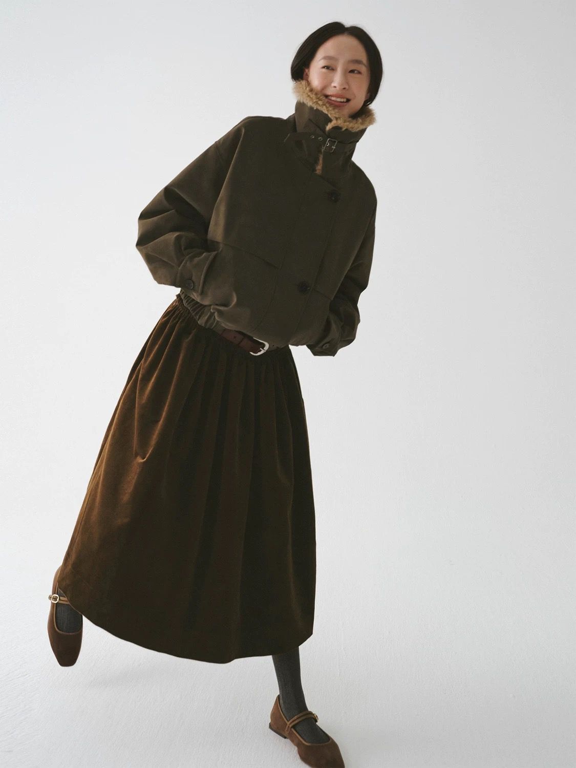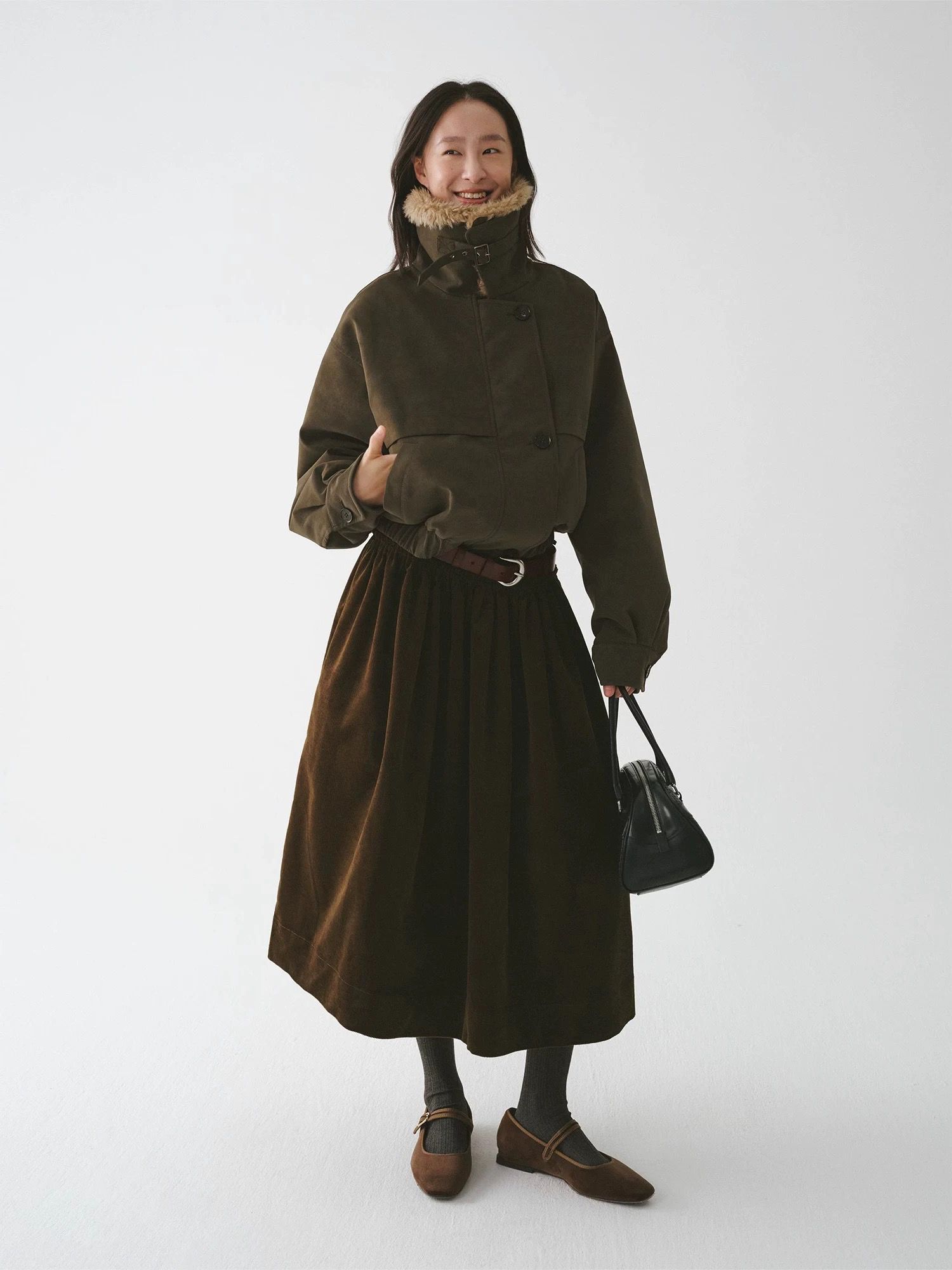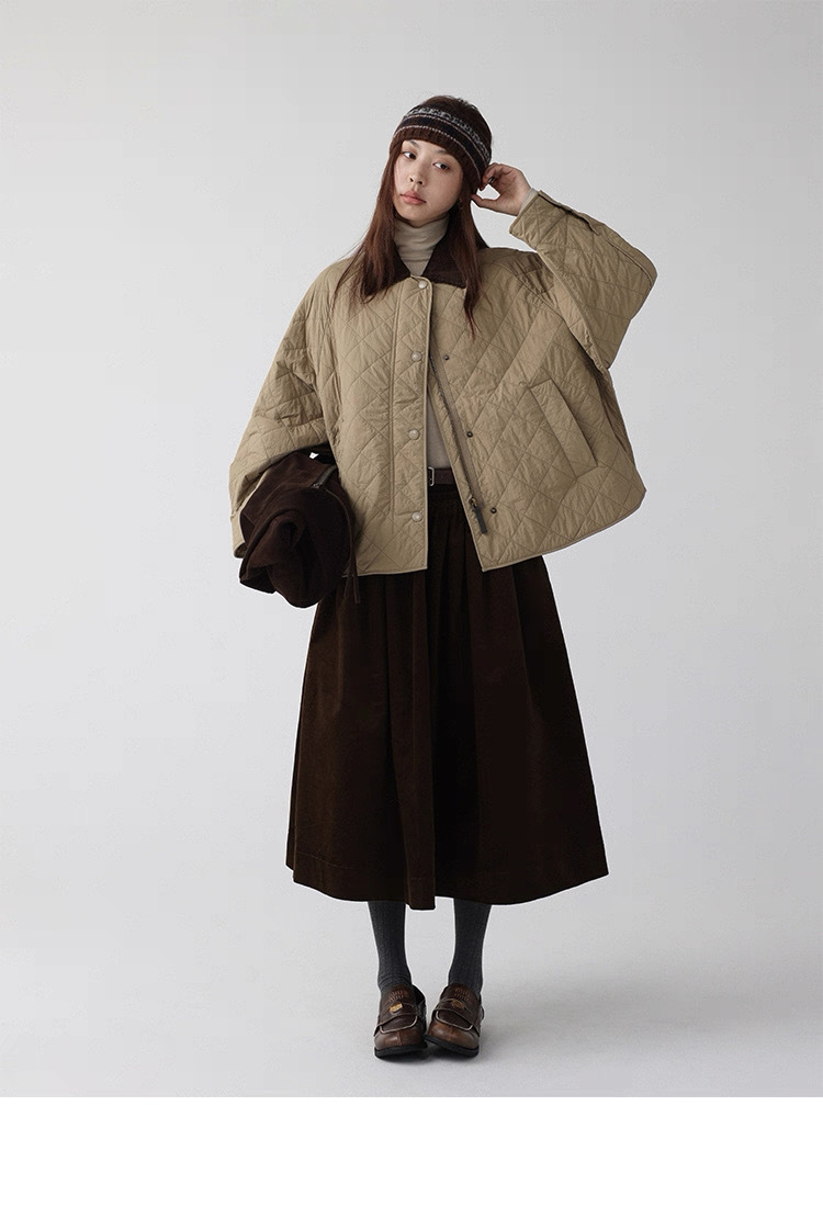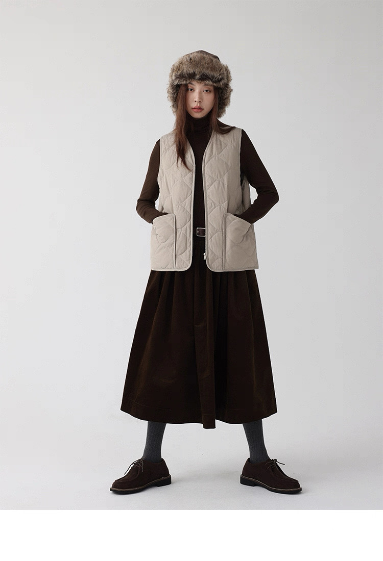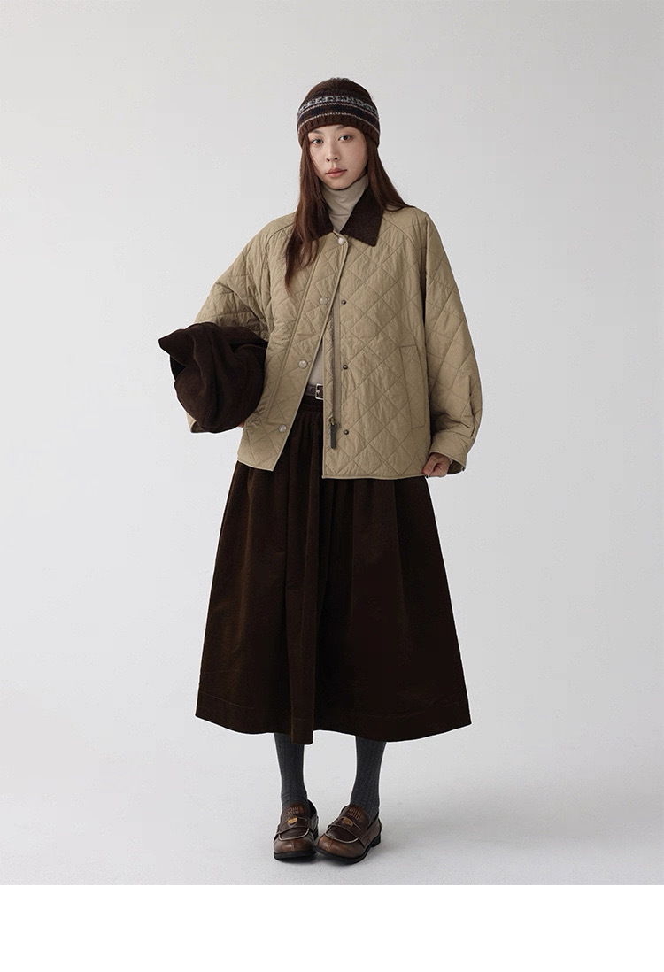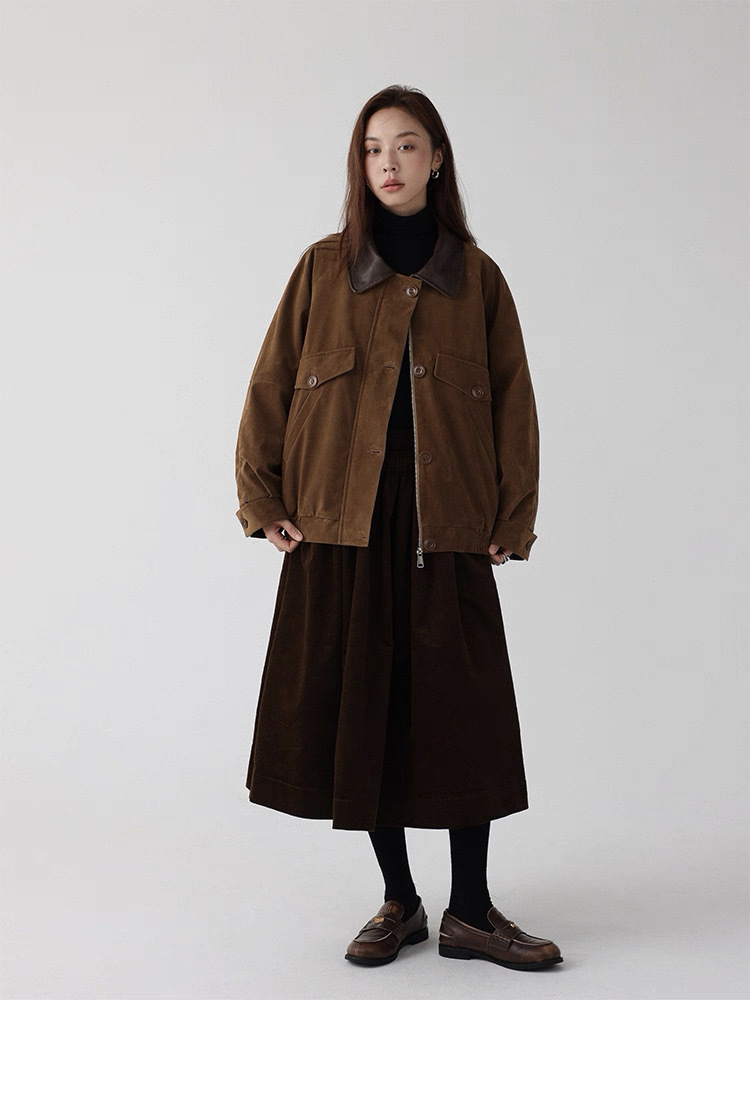法式燈芯絨口袋A字裙