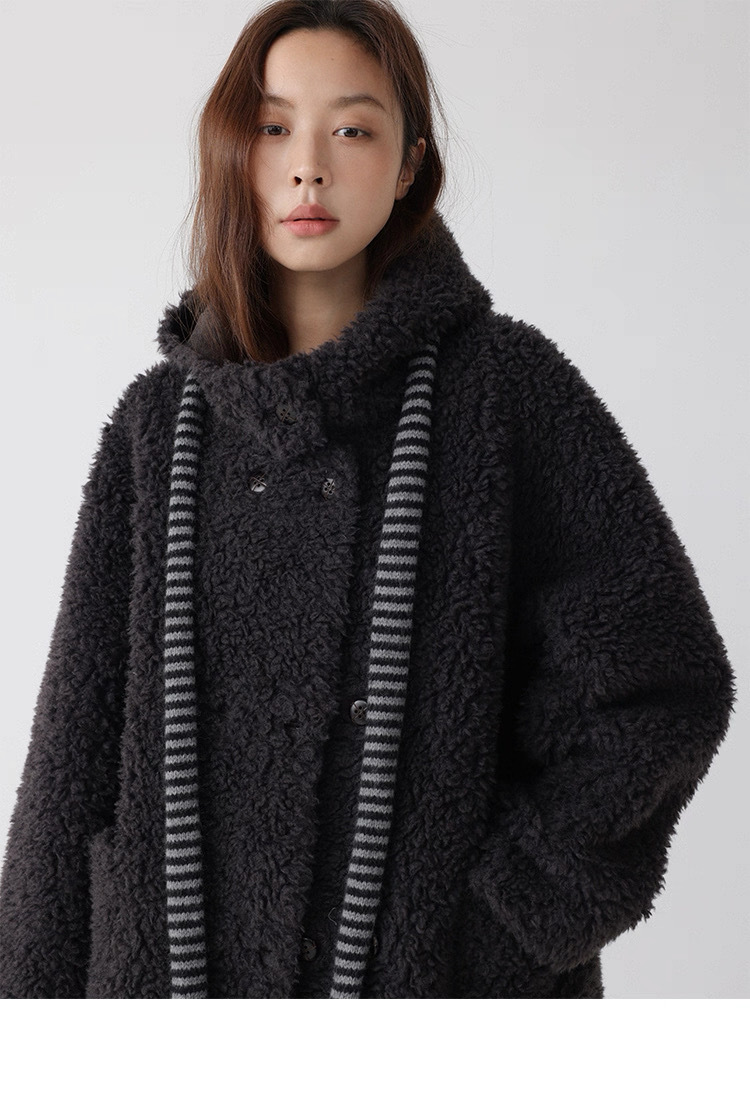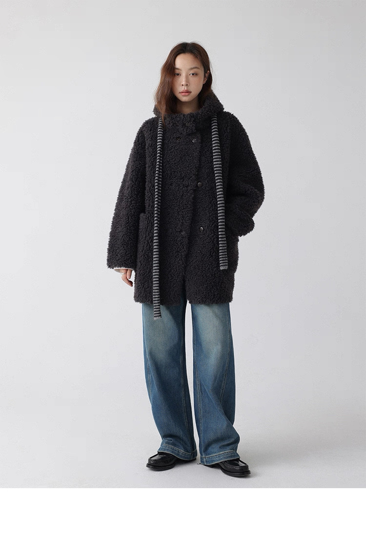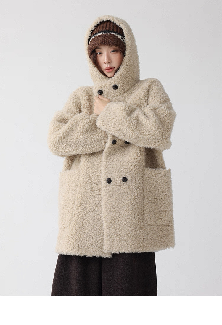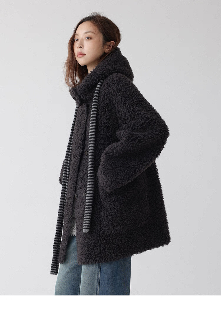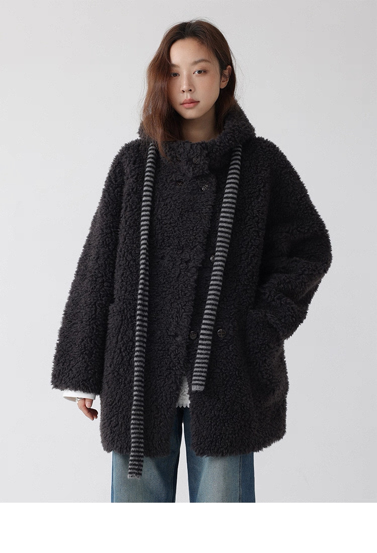 熊寶寶感立領連帽羊毛外套