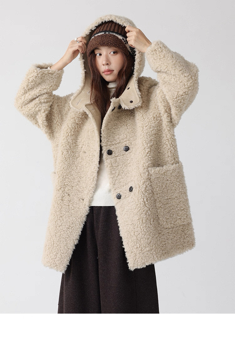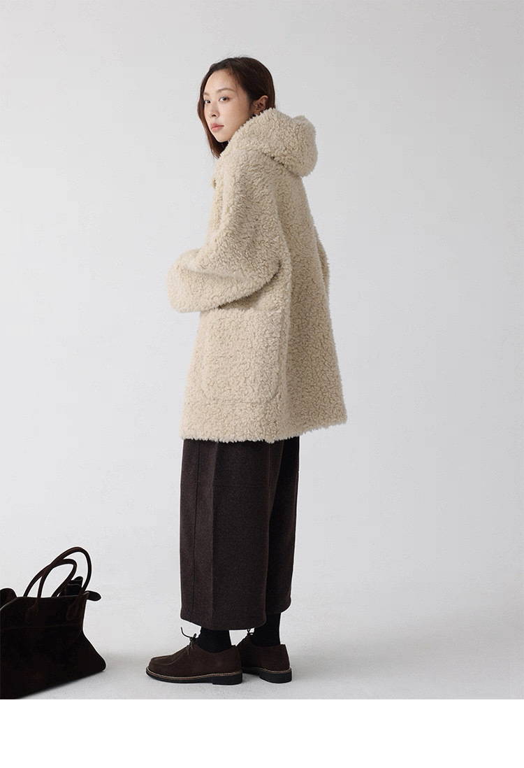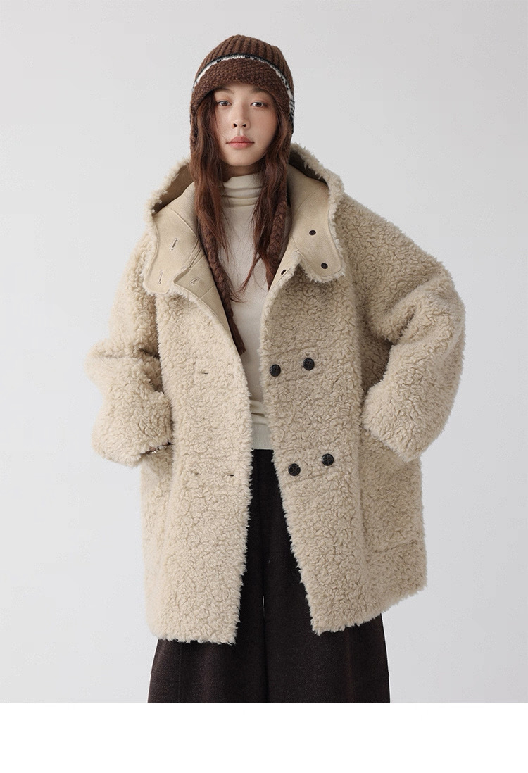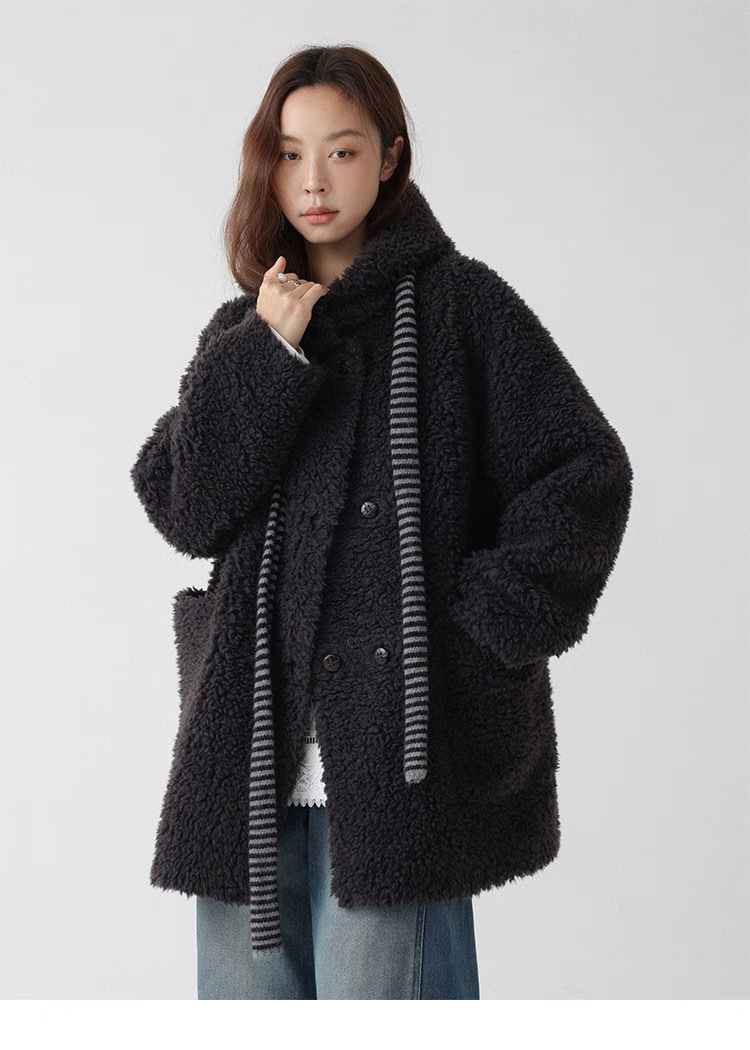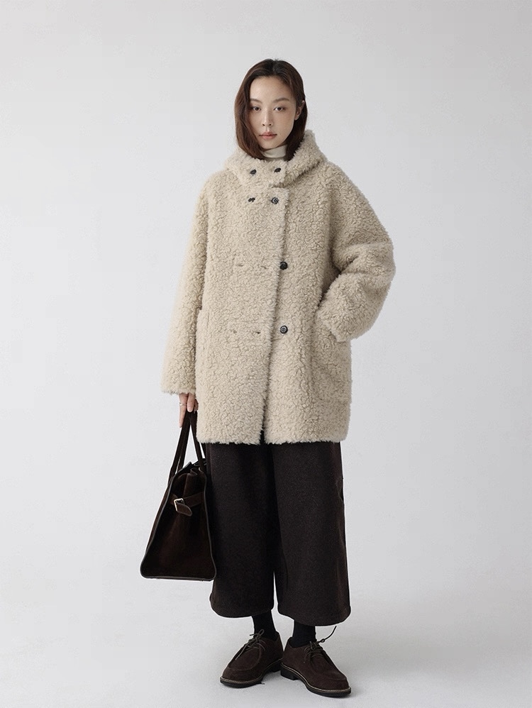 熊寶寶感立領連帽羊毛外套