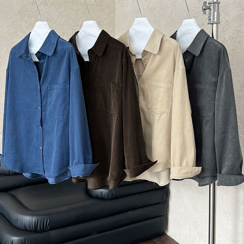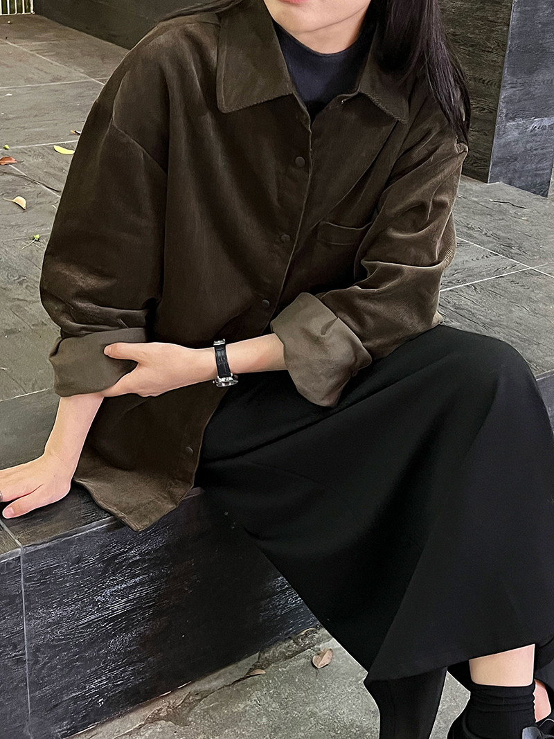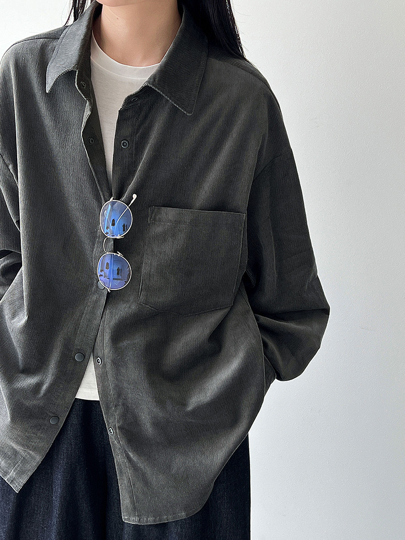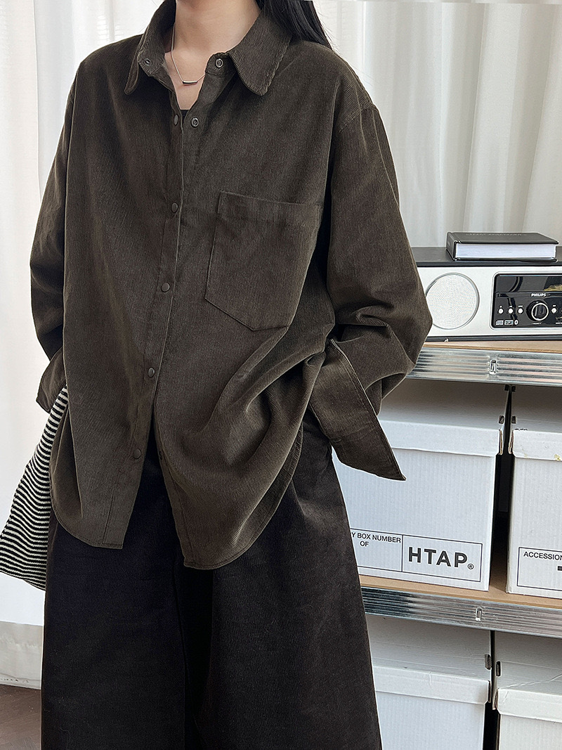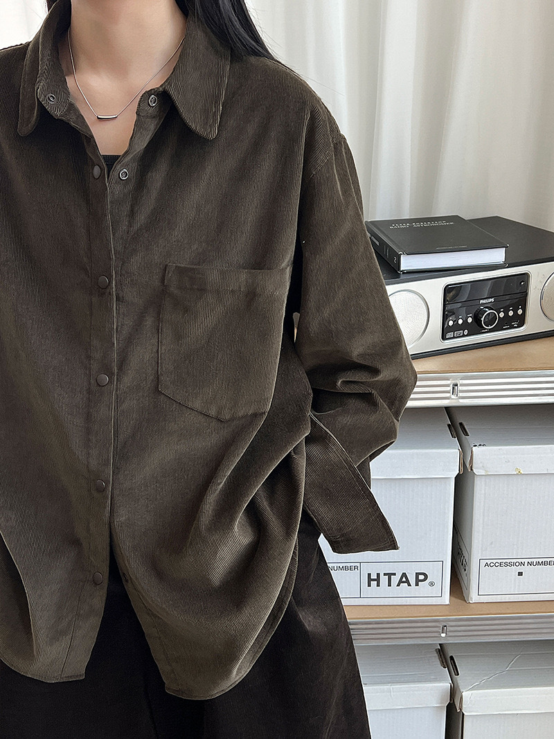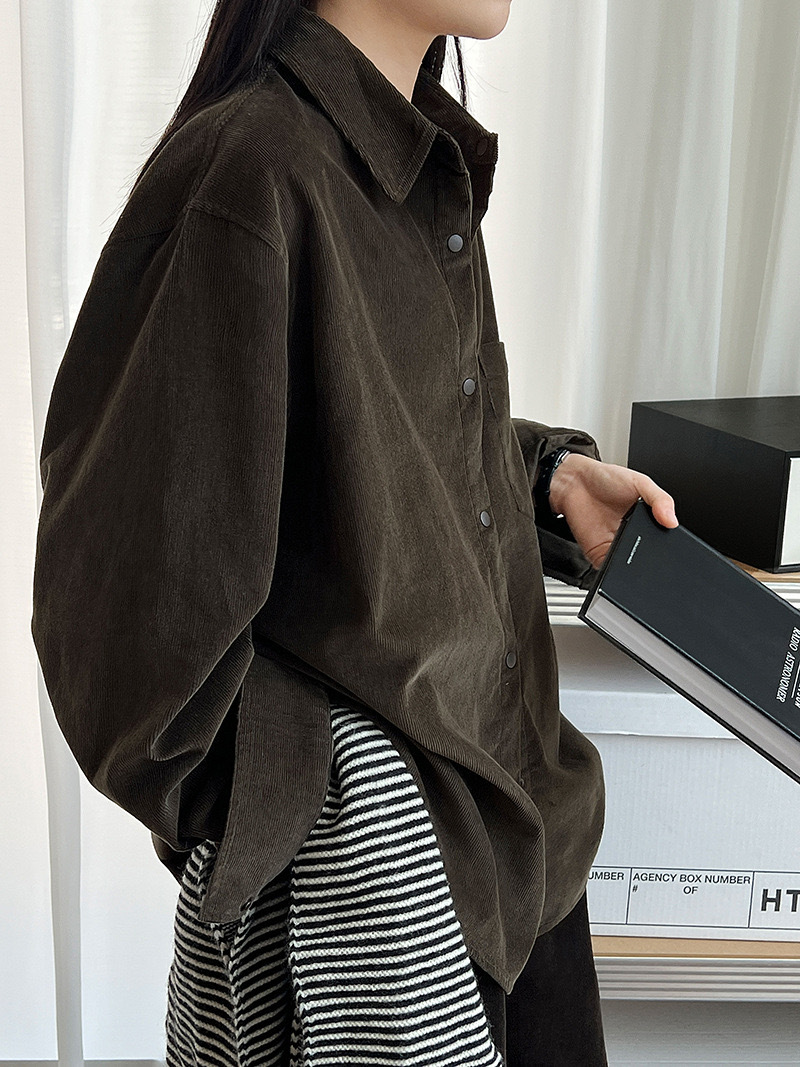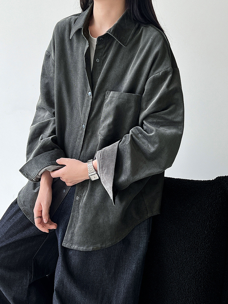 男友感燈芯絨長版襯衫
