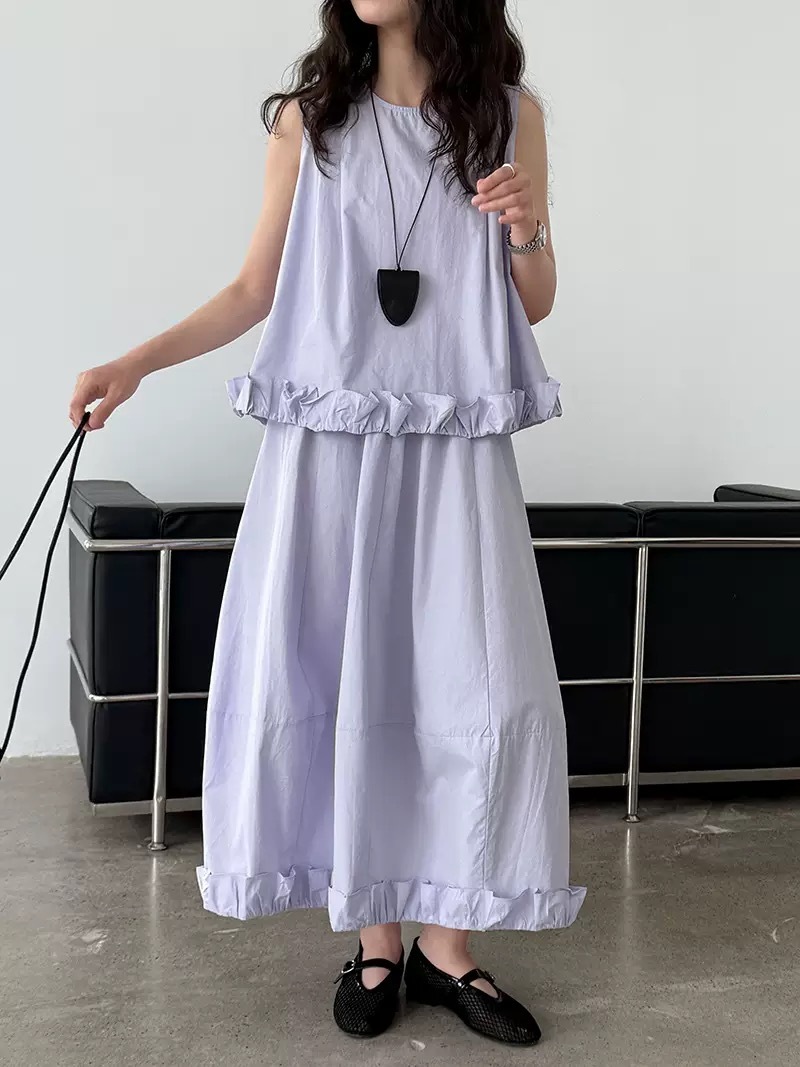 推薦!冰涼垂感假兩件V領背心裙(2色)